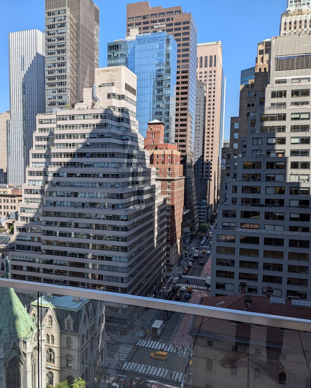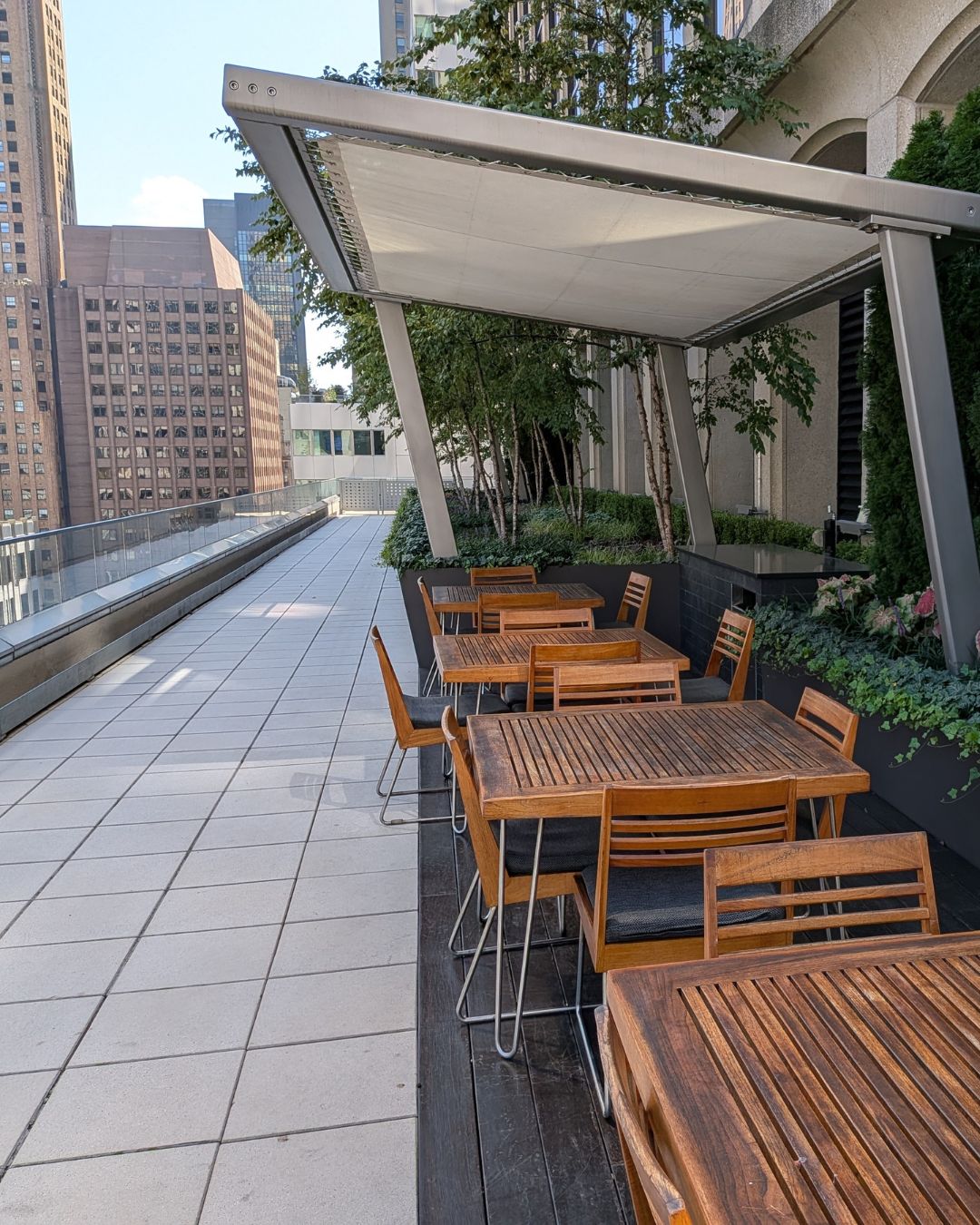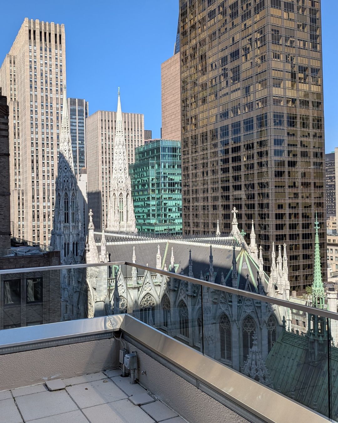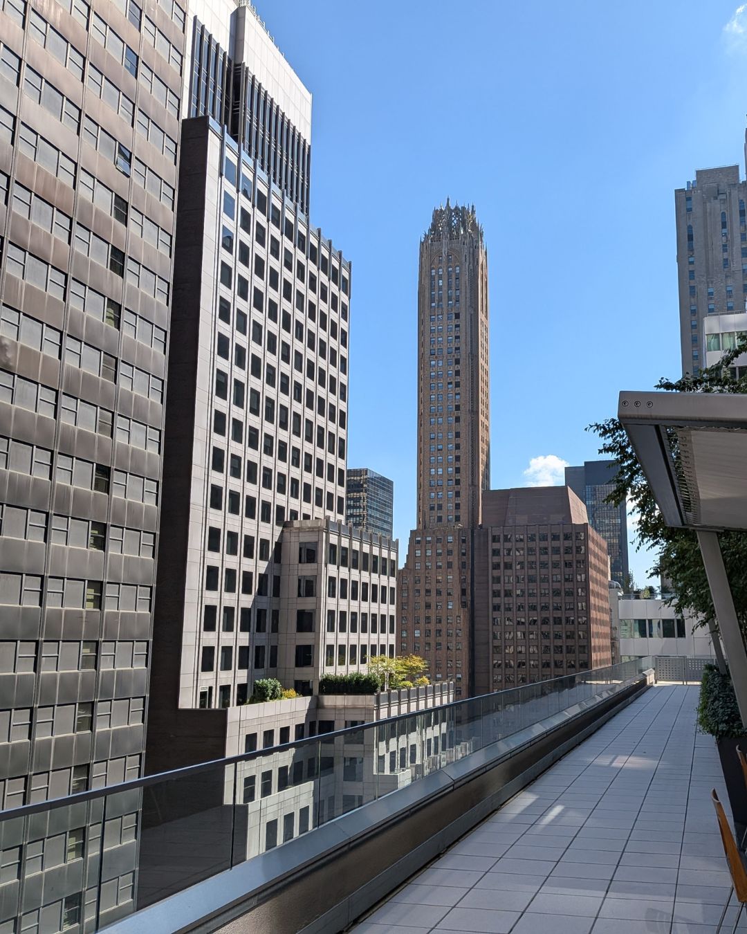 A recent transformation by Fogarty Finger introduced a reimagined tenant experience, highlighted by a wraparound Terrace Garden on the 15th floor with panoramic views of St. Patrick’s Cathedral. The building also features a sophisticated amenity floor with a winter garden, library, lounge, meditation studio, and conference spaces—creating a modern environment that balances productivity and wellness.