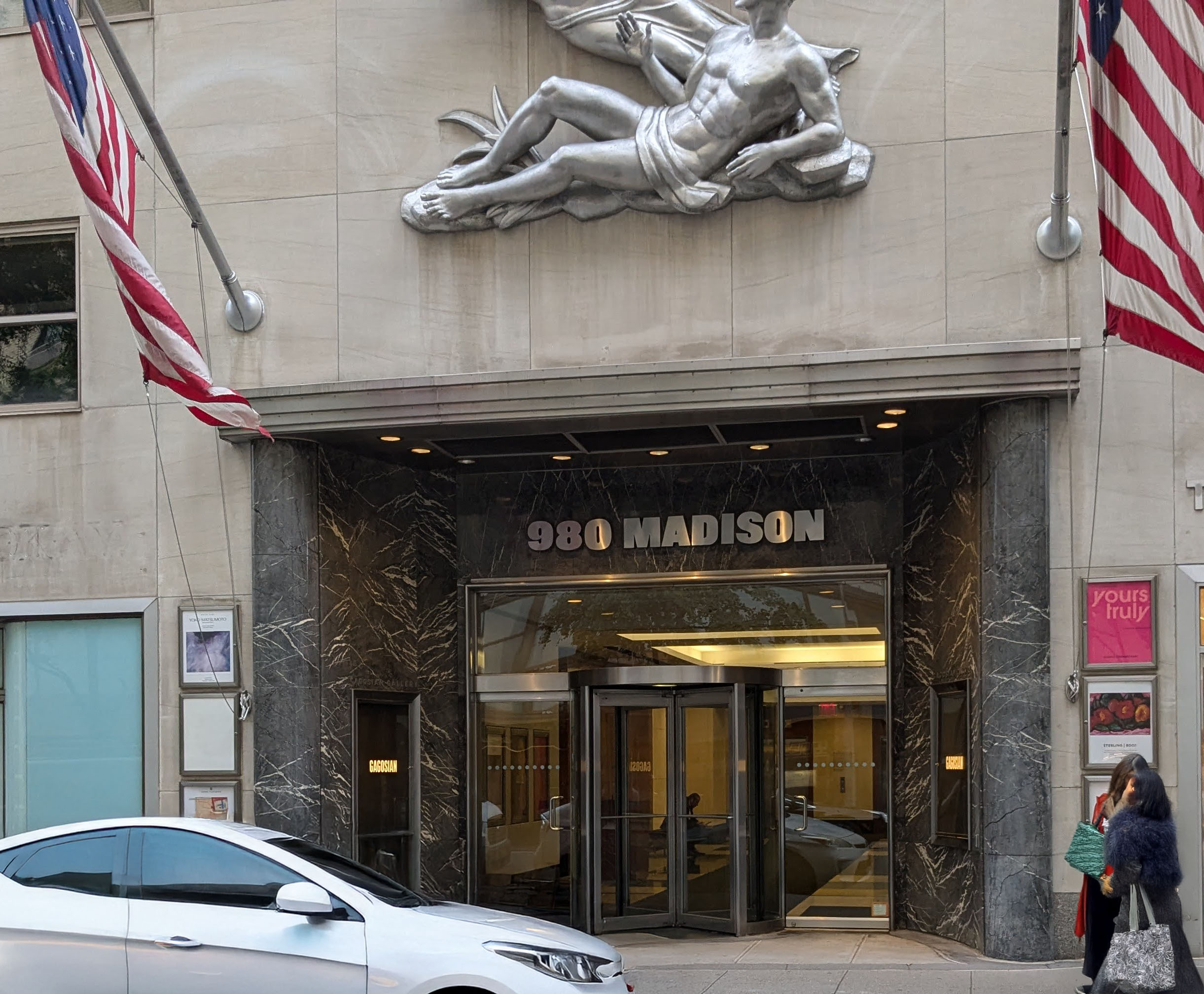 The building’s understated limestone façade is adorned with “Venus and Manhattan,” a prominent sculpture by Wheeler Williams that greets visitors with an elegant nod to classical mythology. Over the decades, 980 Madison has evolved from its origins as an auction house into a dynamic destination for high-end galleries, luxury retail, and creative offices, all while preserving its rich artistic legacy and architectural integrity.