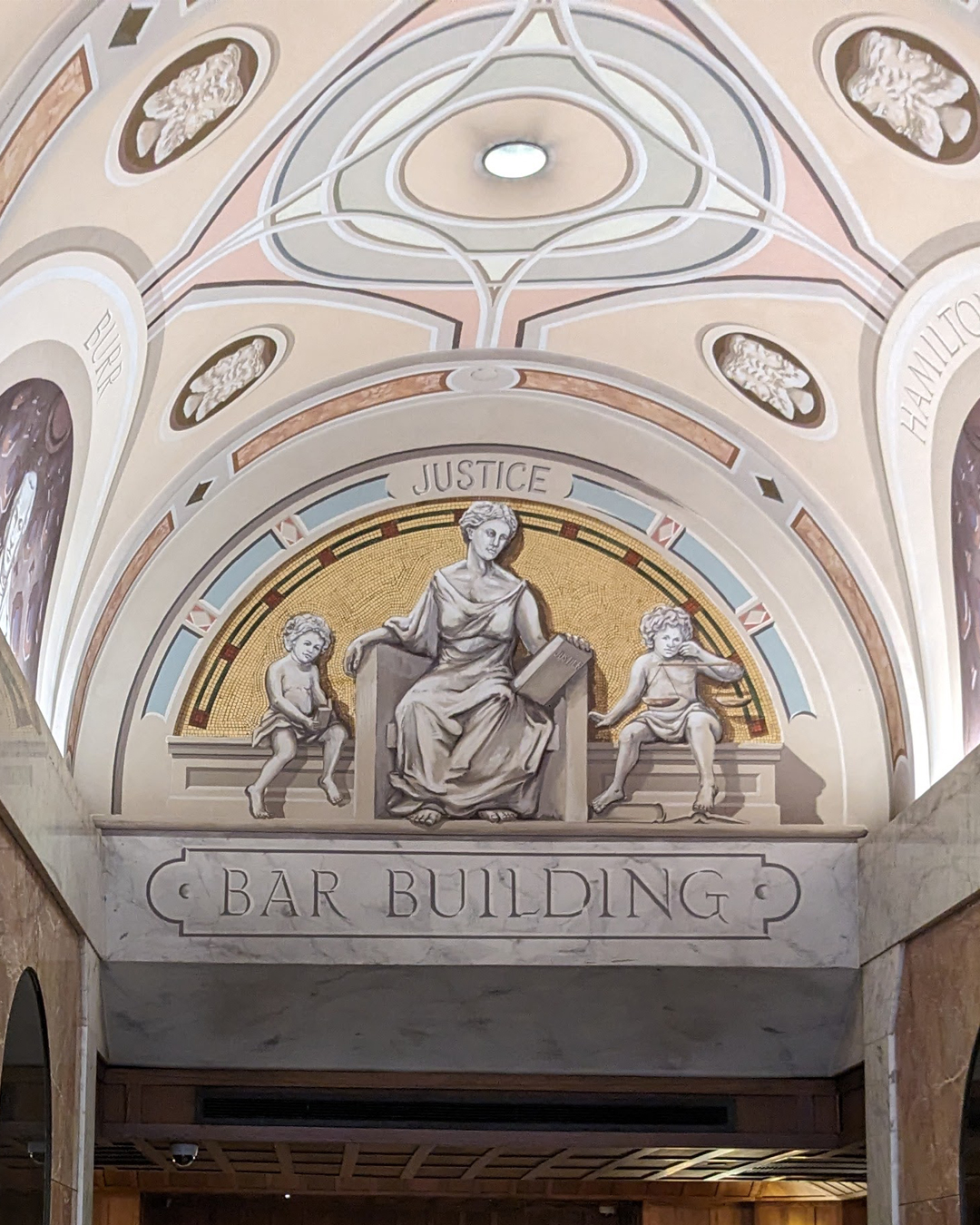 Located at 36 West 44th Street in Manhattan, The Bar Building is a historic skyscraper celebrated for its unique architectural character and legal heritage. Completed in 1900, the 12-story tower was originally developed as the headquarters for the New York City Bar Association and other legal organizations. Its most distinctive features are the stone carvings and bas-reliefs adorning the façade, which depict bartenders, bar implements, and other symbolic motifs—an homage to its namesake. Though no longer the home of the Bar Association, the building continues to stand as a landmark in Midtown with enduring architectural and cultural significance.