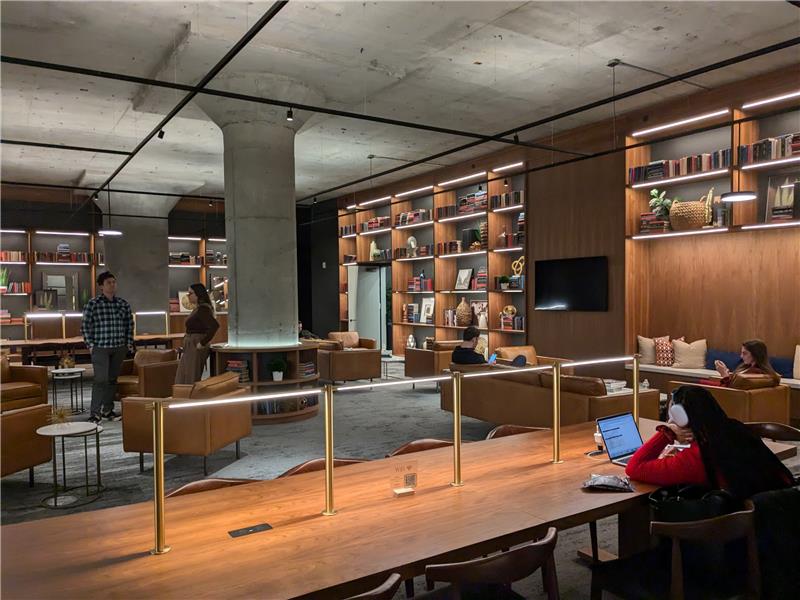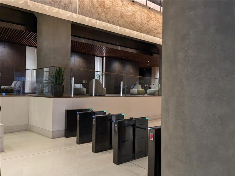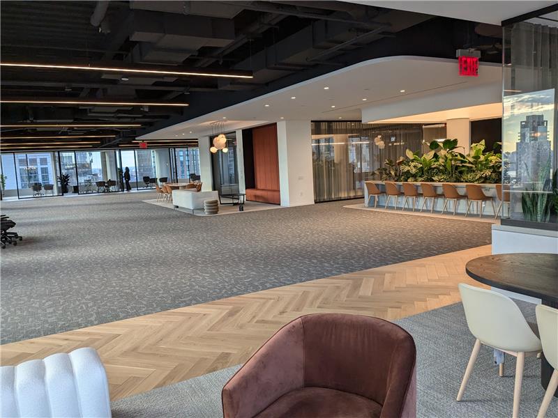 Designed for wellness and sustainability, Hudson Commons is both LEED Platinum and WiredScore Platinum certified. The building prioritizes tenant health through advanced air filtration systems, HEPA filters, bi-polar ionization, increased fresh-air intake, and touch-minimizing technologies. A proprietary mobile app streamlines workplace logistics—from turnstile access and elevator dispatch to guest registration and on-demand workspace reservations—creating a seamless digital experience for modern tenants.