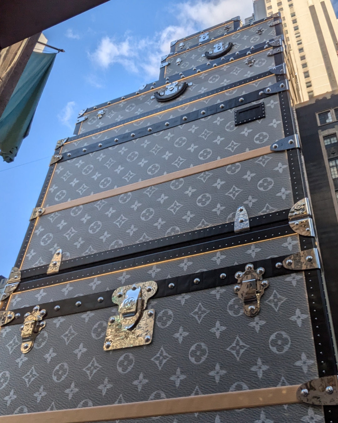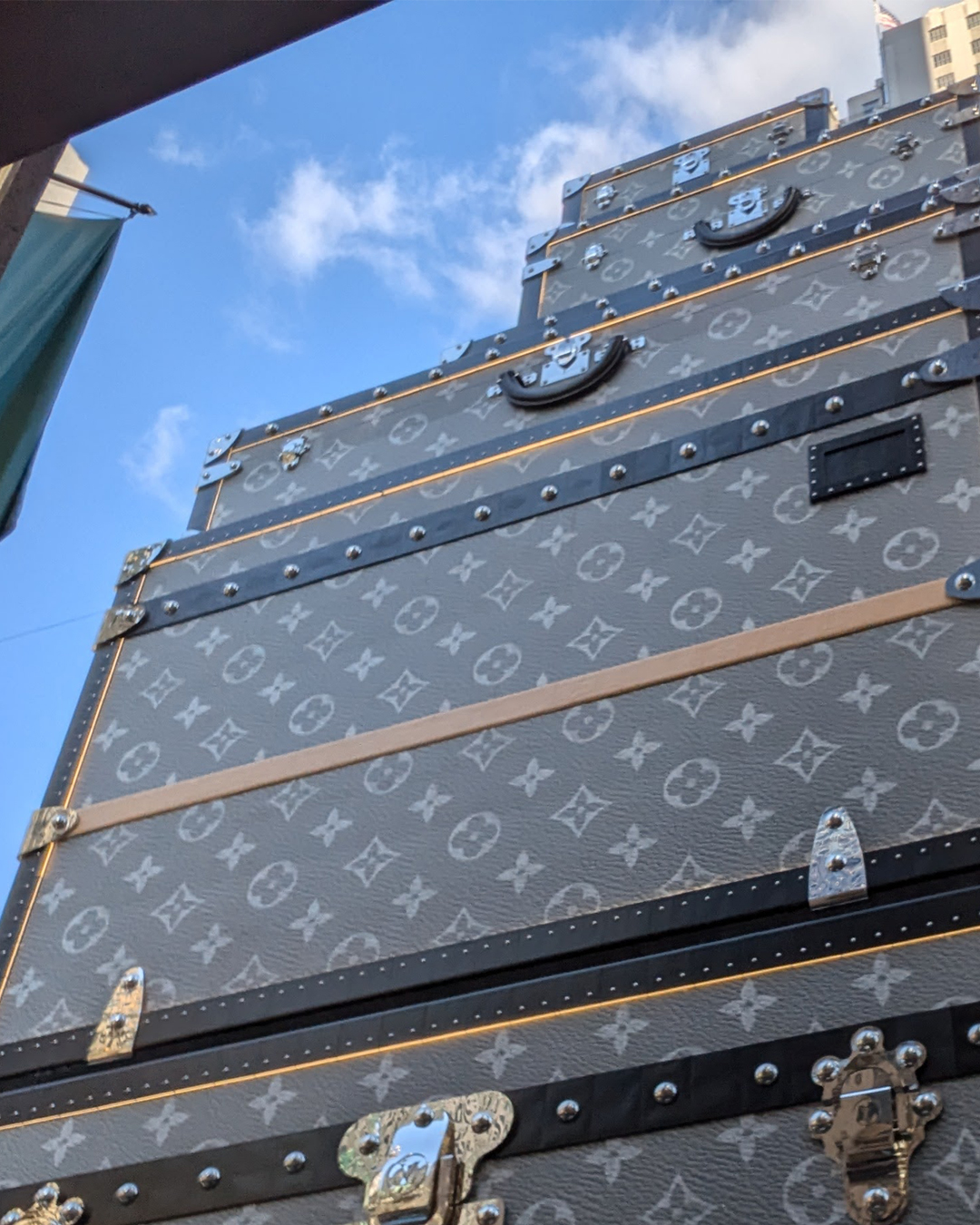 Located at the corner of Fifth Avenue and 57th Street, the LVMH building stands as a landmark of luxury and design in the heart of Manhattan. Home to Louis Vuitton’s flagship store, this architectural gem embodies the elegance and innovation of the iconic fashion house. In late 2024, the building’s façade was reimagined with a bold installation featuring a vertical cascade of Courrier Lozine 90 trunks—a nod to the brand’s historic roots in trunk-making and its deep connection to New York City. This transformation signals the start of an ambitious renovation that will redefine the retail experience.